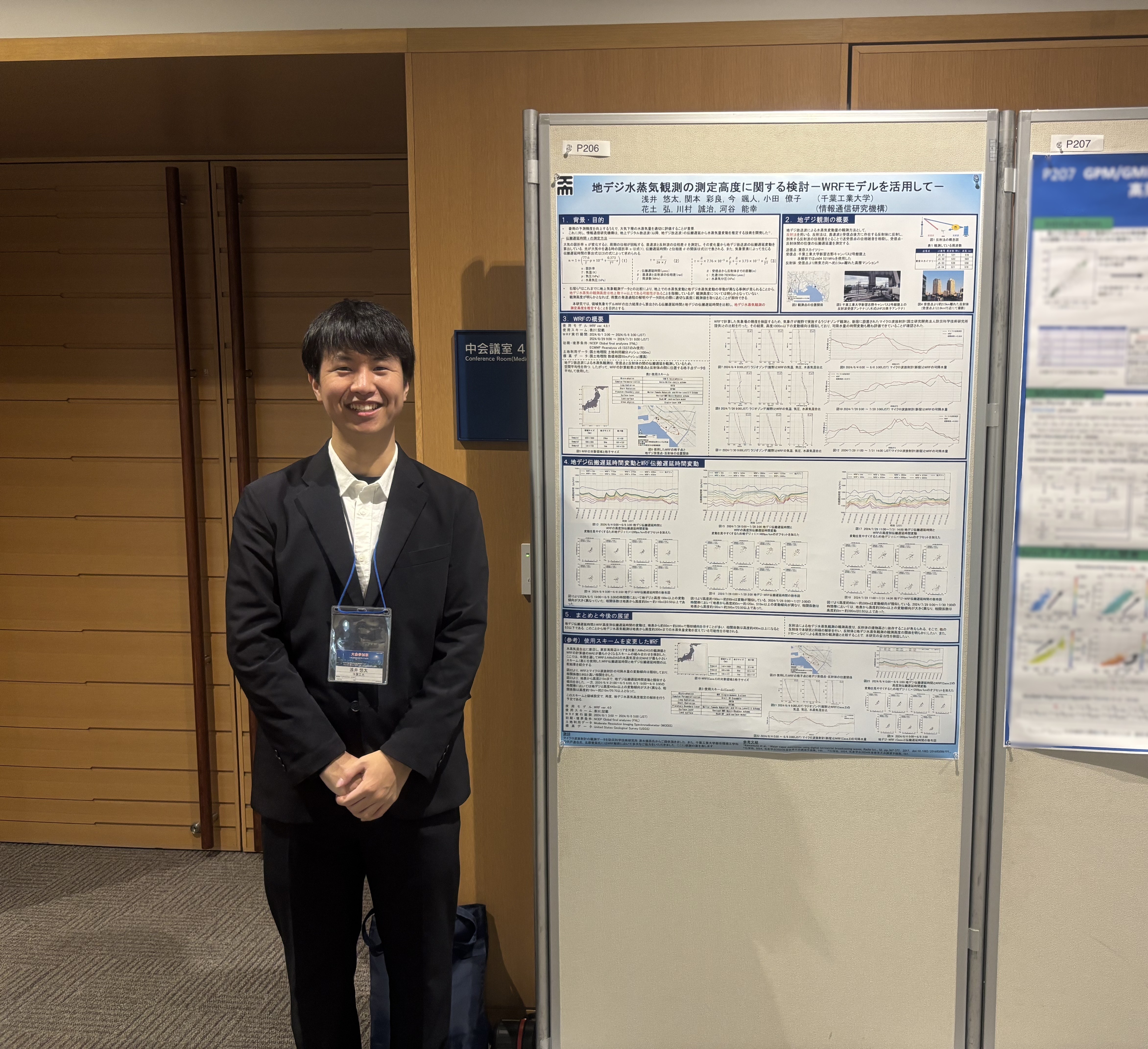 11月4日から8日に開催された気象学会2025年度秋季大会で,B4の浅井くんがポスター発表を行いました. 今回の開催地は福岡国際会議場で,大変多くの方にポスターを見ていただきました.初めて学会に参加して,色々な専門知識を得ることができました.この経験を生かして残り数か月の研究に生かしていきたいと思います. 私は福岡に初めて行ったので,名物をたくさん食べてきました.なかでもごぼ天うどんと博多ラーメンが美味しかったです!