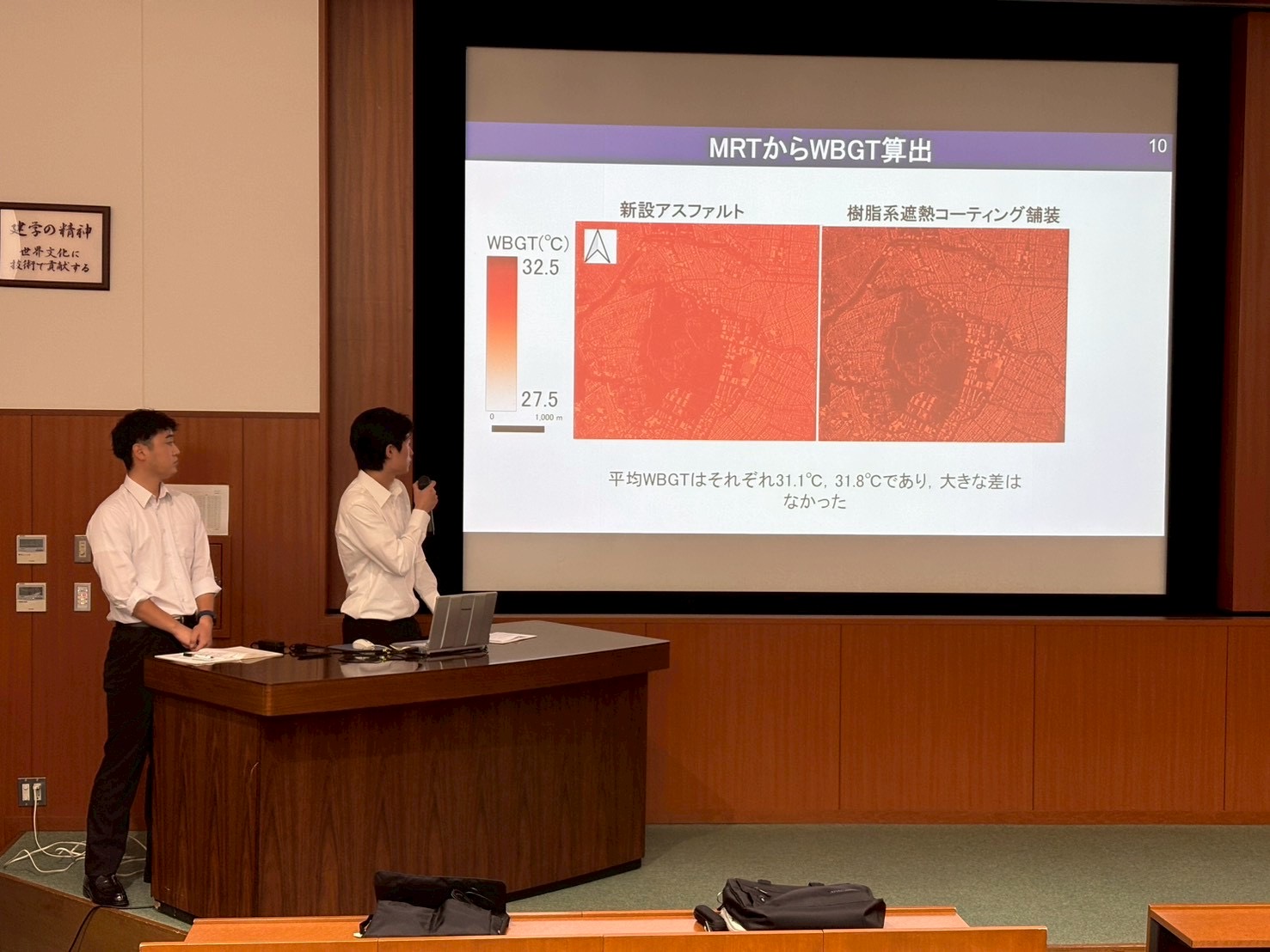 日本ヒートアイランド学会第20回全国大会が,9/19~21に香川県社会福祉総合センターで開催され,本研究室より修士2年の児島・根本がそれぞれポスター発表を行いました. 私は『市街地における植生の有無によるWBGT解析 -三次元点群データの活用-』というタイトルでセッションをしてきました. 論文で名前をお見かけした先生がたからご意見をいただける貴重な経験ができ,修論の方向性も再度確認する良い機会となりました. この学会では気象モデルWRFや熱放射シミュレーション,気象場の実測によって得られた結果を基に,暑さ指数WBGTやSET*を用いた人体への影響効果,植生の日陰効果の検討などを発表しており,私もかなりわくわくしながら発表を聞いていました. 私事ですが初の四国,初の香川で少ない時間ながら初めての土地を楽しんでおりました.讃岐うどんや骨付き鳥を食べ,地元のカフェでモーニングを過ごすという,とても充実した三日間になりました. 修論提出が遠い未来ではなくなってきた今日この頃,再度気を引き締めて研究に臨んでいきたいですね.